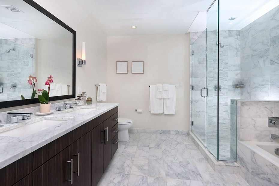 Bathrooms in White Marble & Kohler Fixtures