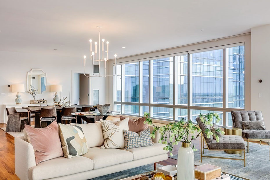 Rising over Boston’s expansive Waterfront neighborhood, The InterContinental Residences offer a luxurious living experience that effortlessly combines sophistication and modern elegance, boasting a range of features that define luxury city living. With meticulous attention to detail, the interiors are characterized by clean lines, neutral color palettes, and high-quality materials. Expansive windows let in abundant natural light while framing panoramic views of Boston’s waterfront, seaport, and iconic city skyline. The InterContinental residences reflect a commitment to both style and functionality, and the living areas of these luxury condos are designed to be inviting yet sophisticated. Spacious layouts provide ample room for relaxation and entertaining with an open-concept design seamlessly connecting the living, dining, and kitchen areas. With thoughtful design, well-appointed kitchens, elegant living areas, and luxurious bathrooms, this residential building sets a new standard for sophisticated comfort. Equipped with top-of-the-line appliances and elegant cabinetry, kitchens offer granite or marble countertops for ample workspace, while sleek fixtures and finishes reflect modern elegance.